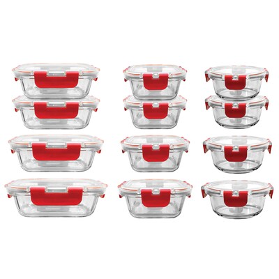 NutriChef Stackable Borosilicate Glass Food Storage Containers Set, 24-Piece (NCGLRED) | Quill.com