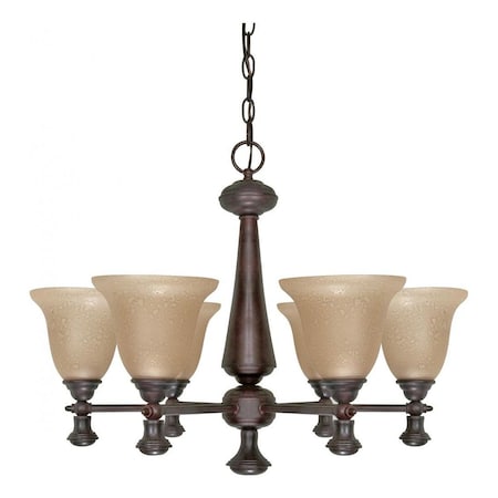 60/100 Energy Star: No Features: -Six light chandelier. -Mericana collection. -Old bronze finish. -Amber water glass shade. -Traditional style. -Assembly required. -Available in: -Energy star compliant. -Non-energy star compliant. . Specifications: -Nuvo provides one year warranty. -Accommodates (6) 60W A19 medium base bulb or (6) 13W T2 GU24 bulb. -Overall dimensions: 19.5'' H x 25.25'' W.