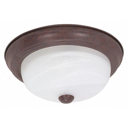 60-2625, nuvo, 2, light, es, 11", flush, fixtue, alabaster, glass, (2), 13w, gu24, Product Description: 2 Light Es 11" Flush Fixtue With Alabaster Glass (2) 13w Gu24 Lamps Included. Lighting Category: Flush Mount Ceiling Fixture. Style: Transitional. Finish: Old Bronze. Shade: Alabaster. Dimensions: 5.375" Height x 13.125" Width. Bulbs: (2) 13 Watt T2. Bulbs Included. Energy Star Rated: Yes. Suitable for Damp locations.