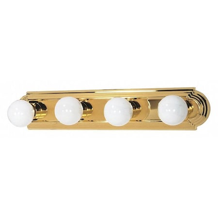 60-309, nuvo, 4, light, 24", vanity, racetrack, style, Product Description: 4 Light 24" Vanity Racetrack Style. Lighting Category: Bathroom Wall & Vanity Fixture. Style: Utility. Finish: Polished Brass. Dimensions: 4.75" Height x 24" Width x 2" Extension. Bulbs: (4) 100 Watt Type g. Bulbs Not Included. Suitable for Damp locations.