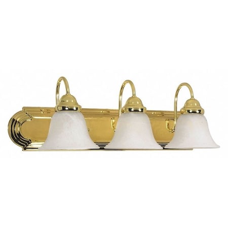 60-329, nuvo, ballerina, 3, light, 24", vanity, alabaster, glass, bell, shades, Product Description: Ballerina 3 Light 24" Vanity With Alabaster Glass Bell Shades. Product Collection: Ballerina. Lighting Category: Bathroom Wall & Vanity Fixture. Style: Traditional. Finish: Polished Brass. Shade: Alabaster. Dimensions: 7.625" Height x 24" Width x 8.5" Extension. Bulbs: (3) 100 Watt A19. Bulbs Not Included. Suitable for Damp locations.