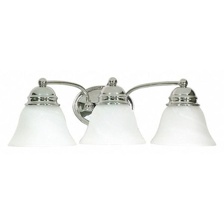 60-338, nuvo, empire, 3, light, 21", vanity, alabaster, glass, bell, shades, Product Description: Empire 3 Light 21" Vanity With Alabaster Glass Bell Shades. Product Collection: Empire. Lighting Category: Bathroom Wall & Vanity Fixture. Style: Transitional. Finish: Polished Chrome. Shade: Alabaster. Dimensions: 6.125" Height x 20.5" Width x 8" Extension. Bulbs: (3) 100 Watt A19. Bulbs Not Included. Suitable for Damp locations.