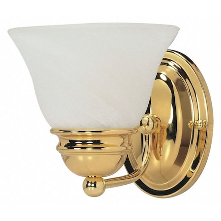 60-348, nuvo, empire, 1, light, 7", vanity, alabaster, glass, bell, shades, Product Description: Empire 1 Light 7" Vanity With Alabaster Glass Bell Shades. Product Collection: Empire. Lighting Category: Bathroom Wall & Vanity Fixture. Style: Transitional. Finish: Polished Brass. Shade: Alabaster. Dimensions: 6.5" Height x 6.25" Width x 9" Extension. Bulbs: (1) 100 Watt A19. Bulbs Not Included. Suitable for Damp locations.