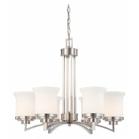 Harmony 6 Light Chandelier Satin White Glass Brushed Nickel