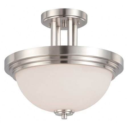 Harmony 2 Light Semi Flush Fixture Satin White Glass Brushed