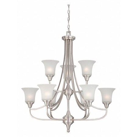 Surrey 9 Light Two Tier Chandelier Frosted Glass Brushed Nic