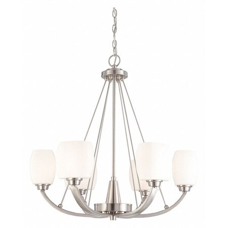 Helium 6 Light Chandelier Satin White Glass Brushed Nickel