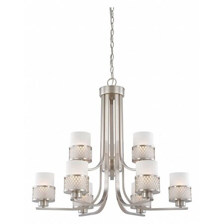 Fusion 9 Light Chandelier Frosted Glass Brushed Nickel