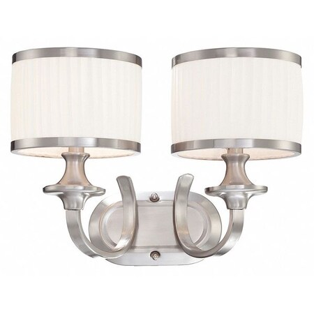 Candice 2 Light Vanity Fixture Pleated White Shades Brushed