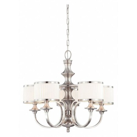 Candice 5 Light Chandelier Pleated White Shades Brushed Nick