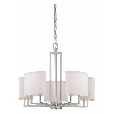 Gemini 5 Light Chandelier Slate Gray Fabric Shades Brushed N