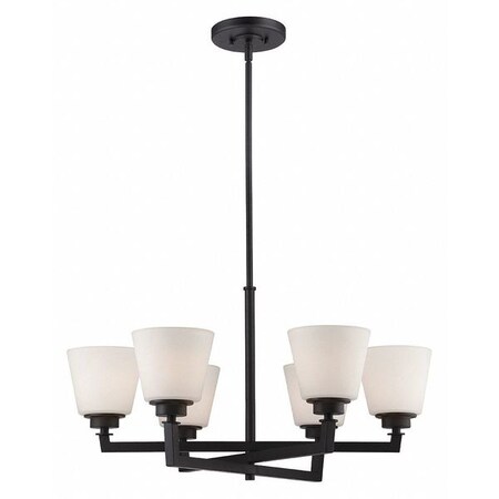 Mobili 6 Light Chandelier Satin White Glass Aged Bronze