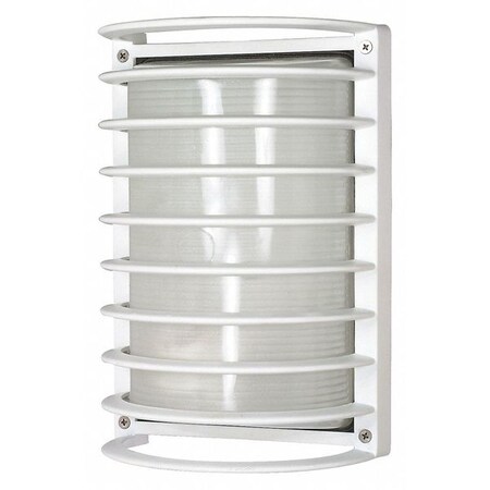 60-576, nuvo, 1, light, cfl, 10", rectangle, cage, bulk, head, (1), 18w, quad, Product Description: 1 Light Cfl 10" Rectangle Cage Bulk Head (1) 18 Quad Lamp Included. Lighting Category: Exterior Home Fixture. Style: Bulk Head. Finish: Semi Gloss White. Shade: Frosted Diffuser. Dimensions: 10" Height x 6.5" Width. Bulbs: (1) 18 Watt T4. Bulbs Included. Suitable for Wet locations.