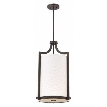 Meadow 3 Light Foyer White Fabric Shade Russet Bronze Finish