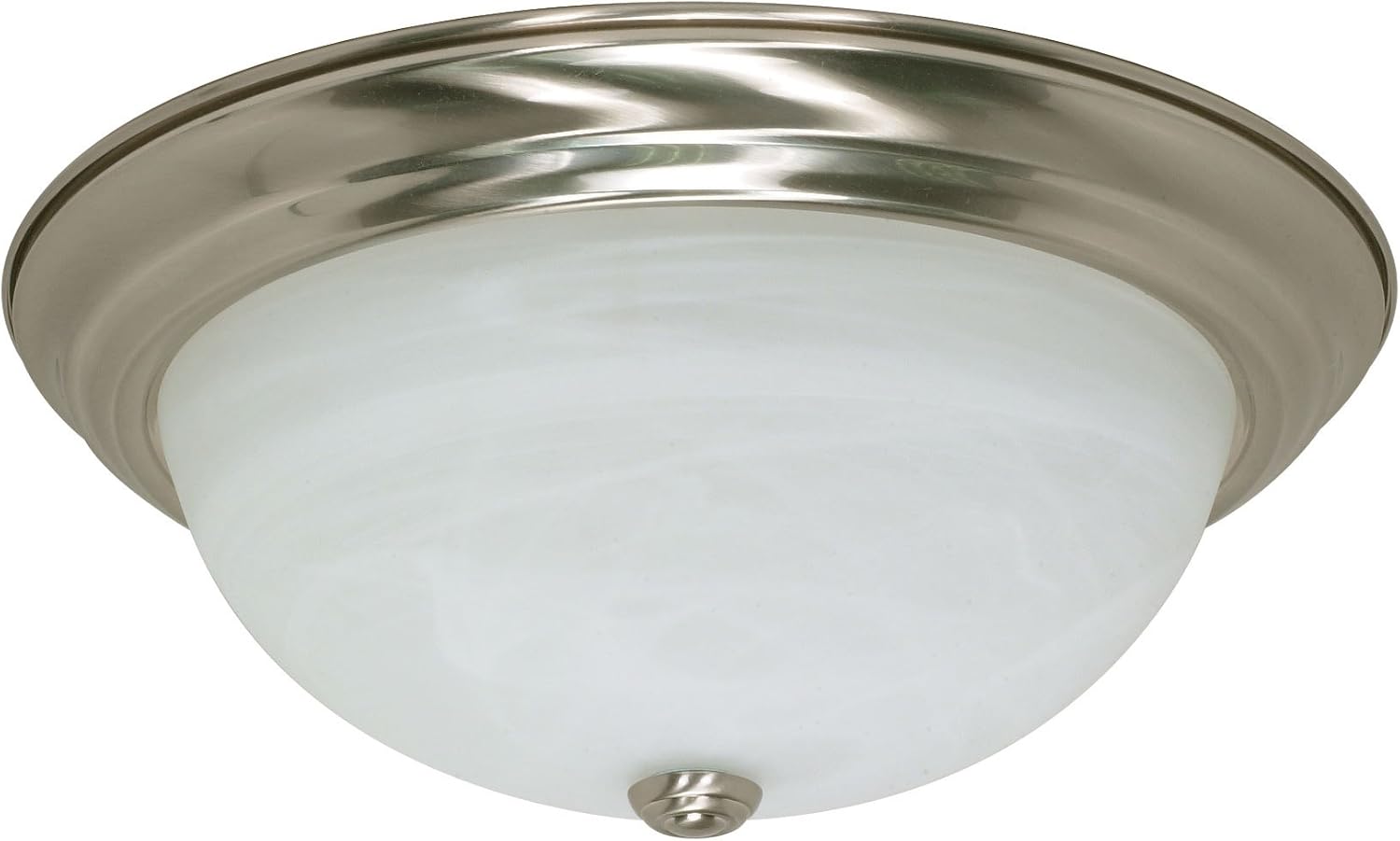 NUVO 60/199 Flush Mounted Dome Light Fixture, 15", Brushed Nickel/Alabaster Glass
