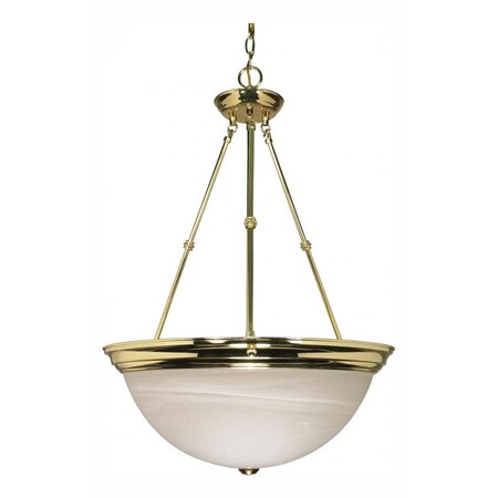 NUVO 60/220 Three Light Pendant, 20 in, Polished Brass/Alabaster Glass