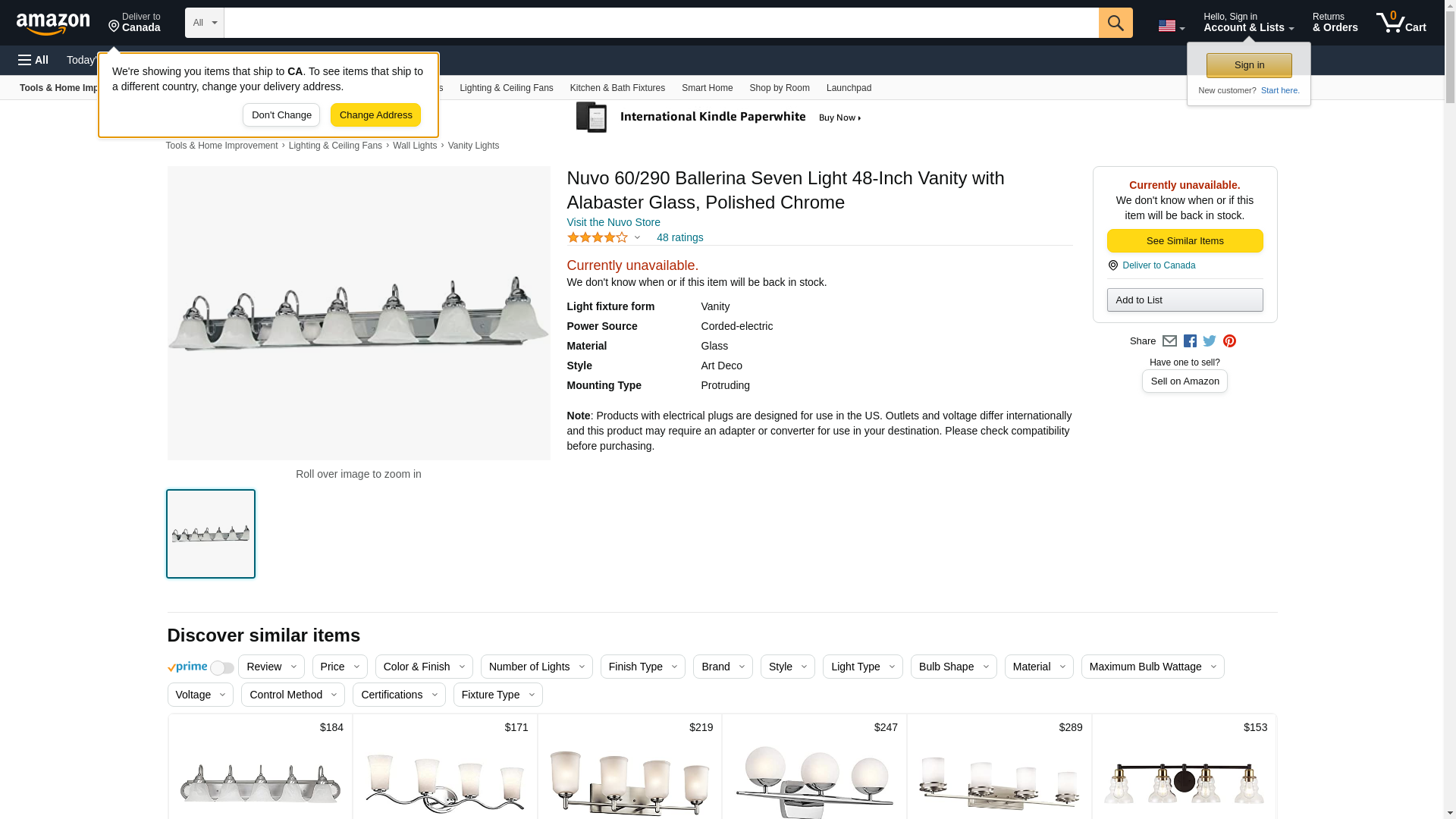 - Nuvo 60/290 Ballerina Seven Light 48-Inch Vanity with Alabaster Glass, Polished Chrome