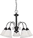 60/3141 Energy Star: No Features: -Five light chandelier. -Ballerina collection. -Mahogany bronze finish. -Frosted white glass shade. -Traditional style. -Assembly required. -Available in: -Energy star compliant. -Non-energy star compliant. . Specifications: -Nuvo provides one year warranty. -Accommodates (5) 60W A19 medium base bulb or (5) 13W T2 GU24 bulb. -Overall dimensions: 18'' H x 24'' W.