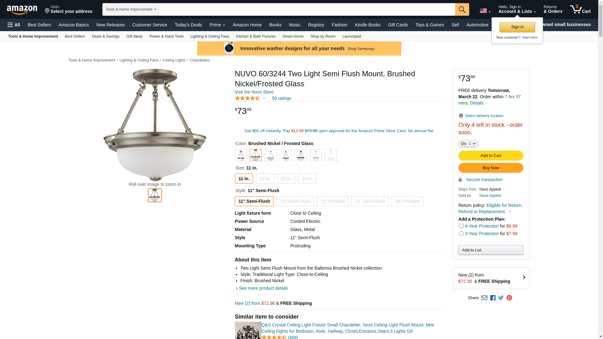 Semi Flush Mount Size/Energy Star: 12" H x 11.375" W/No