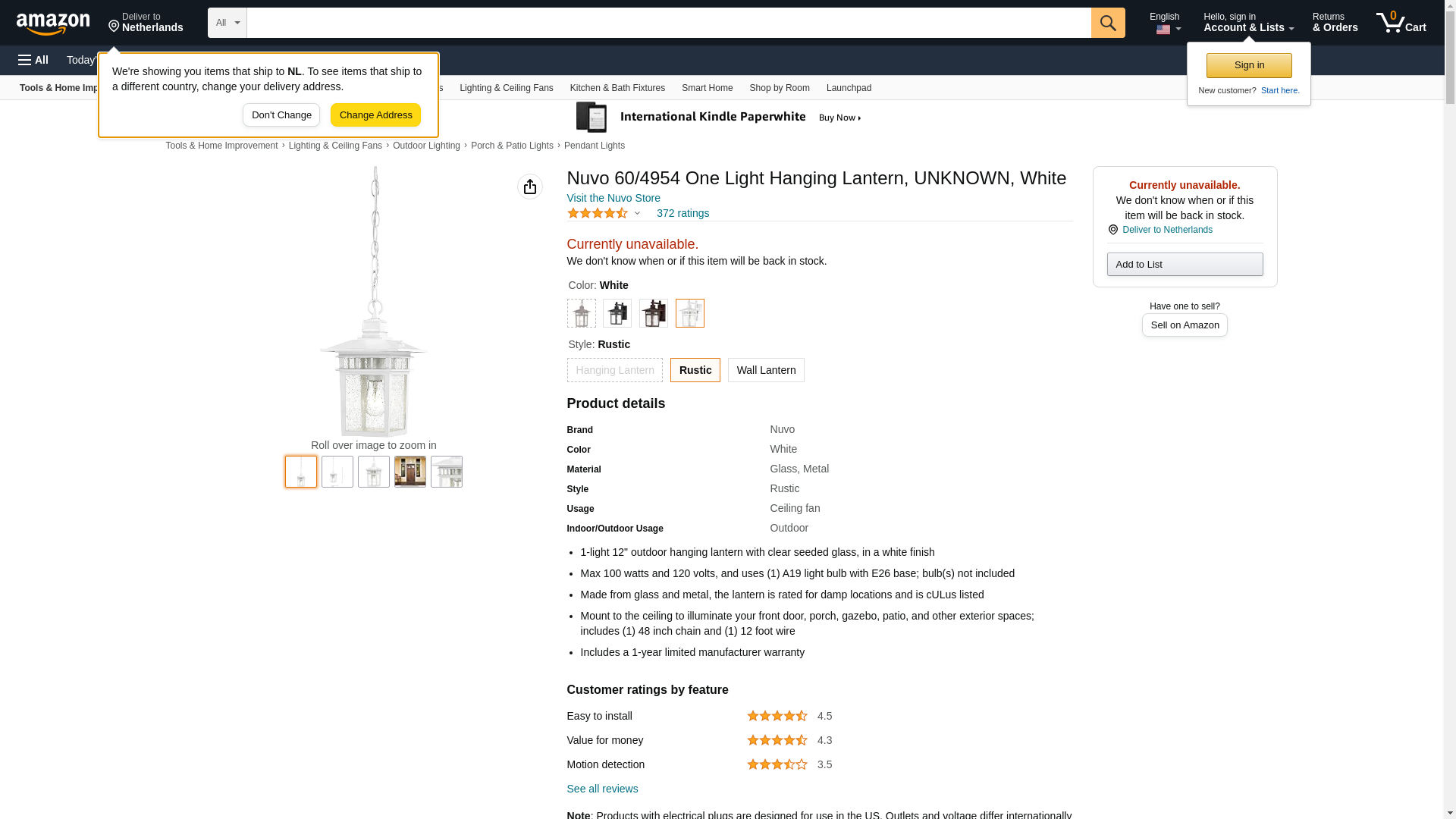 Nuvo 60/4954 One Light Hanging Lantern, UNKNOWN, White