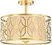 Nuvo 60/5937 | Filigree - 2 Light Semi Flush Mount - Natural Brass Finish - Beige Linen Fabric Shade - Ceiling - Indoor - Residential Fixtures - Fixtures | Topbulb
