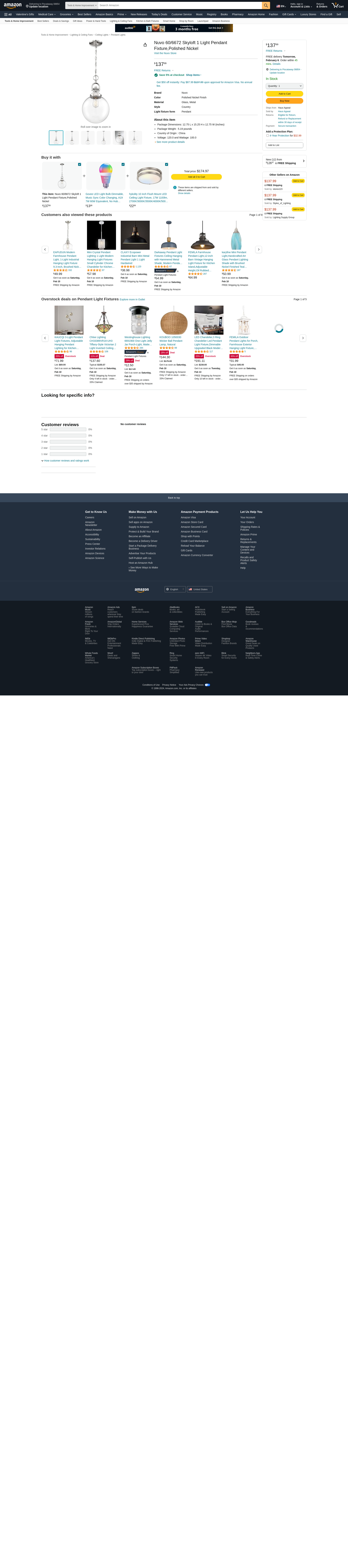 Nuvo 60/6672 Skyloft 1 Light Pendant Fixture,Polished Nickel