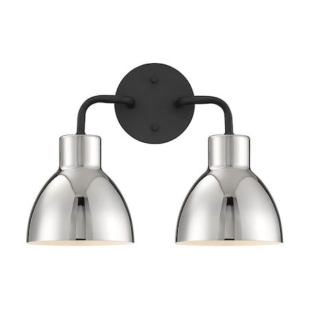 <p>Satco's 60-6772 Sloan 2 light wall sconce and vanity is elegant in its simplicity. Polished nickel shade and contrasting matte black back plate, with opaque shade interior casts a warm glow when illuminated. Sleek and contemporary, the Sloan 2 light vanity adds style to any home.</p><ul><li>?Mount this versatile fixture vertically, in damp locations or anywhere extra light is needed.</li><li>?Fixture dimensional specifications (in inches), Height: 10.38, Width: 13.75, Ext: 6.63</li><li>?Hardwire installation, damp rated for bath and kitchen applications. Indoor use. Wall mount installation, mounting hardware included</li><li>?Uses 2 A19 bulbs, not included.</li><li>?Contemporary Design</li><li>?1 year limited warranty. See manufacturer website for details.</li></ul>