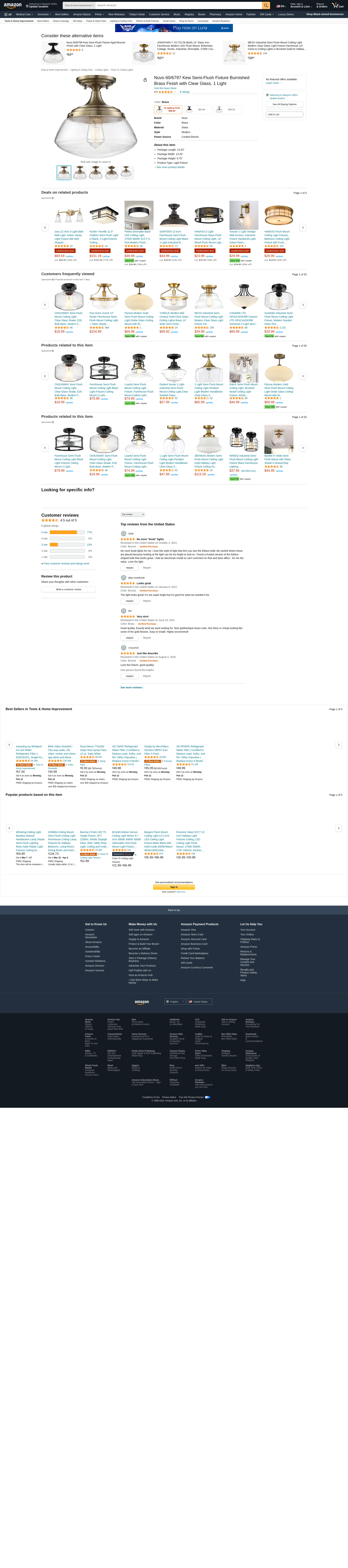 Nuvo 60/6797 Kew Semi-Flush Fixture Burnished Brass Finish with Clear Glass, 1 Light