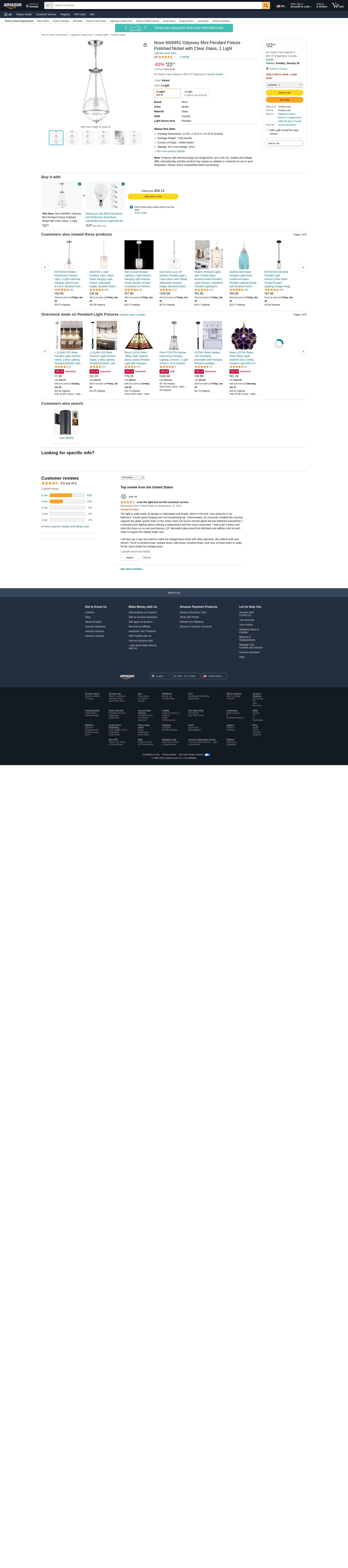 Nuvo 60/6953 Odyssey Pendant Fixture Polished Nickel with Clear Glass, 4 Light