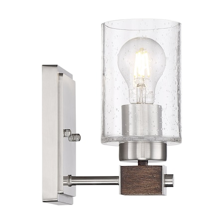 Nuvo 60/6961 Arabel Vanity Brushed Nickel and Nutmeg Wood Finish with Clear Seeded Glass, 1 Light