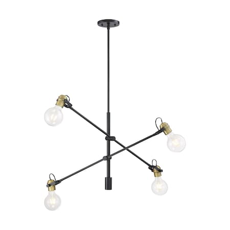 Nuvo 60/6990 Mantra Pendant Fixture Black with Brushed Brass Sockets, 4 Light