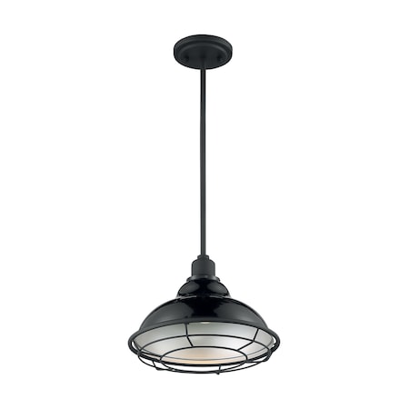 Newbridge; 1 Light; Large Pendant Fixture; Gloss Black Finish with Silver and Textured Black Accents <UL>1 Year Limited<LI>Black / Mounting Direction: Down.