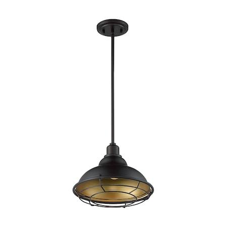 Newbridge; 1 Light; Large Pendant Fixture; Gloss Black Finish with Silver and Textured Black Accents <UL>1 Year Limited<LI>Black / Mounting Direction: Down.