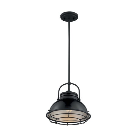 Upton; 1 Light; Large Pendant Fixture; Gloss Black Finish with Silver and Textured Black Accents <UL>1 Year Limited<LI>Black / Mounting Direction: Down.