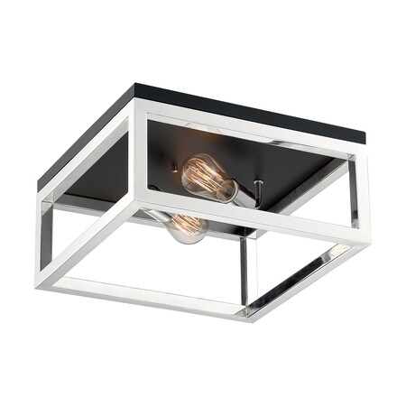 Fixture, Flush, 2-Light, Incandescent, 60W, 120V, A19, Medium Base, Length: 14.00