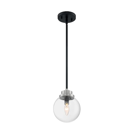 Nuvo Lighting 60/7131 Axis - 1 Light Pendant, Matte Black/Brushed Nickel Finish with Clear Glass