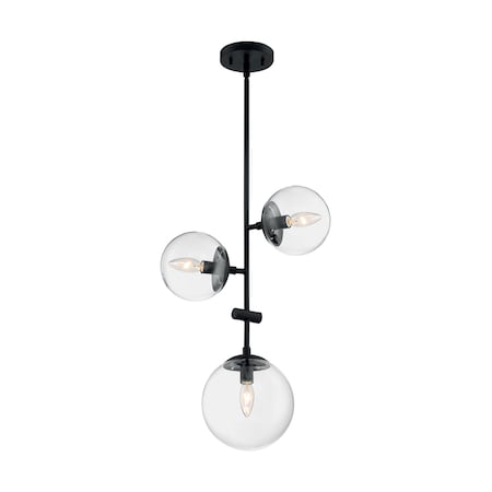Nuvo Lighting 60/7134 Bransel - 3 Light Pendant, Matte Black Finish with Clear Glass