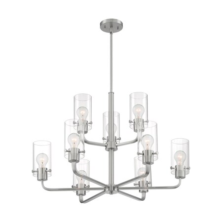 - Modern 9-light, 2-tier chandelier from the Sommerset collection; steel frame and clear glass shades