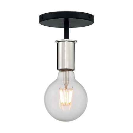 NUVO 60/7353 Ryder 1 Light Semi Flush Fixture, Black/Polished Nickel
