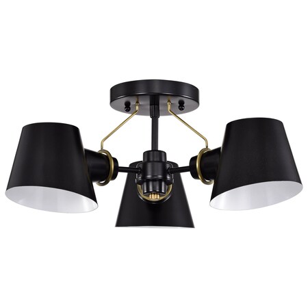 Baxter 3-Light Semi-Flush - Black with Burnished Brass