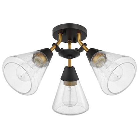 Starlight 3-Light Semi Flush Mount, E26 60W, Matte Black, Clear Seeded