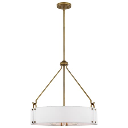 Halter 4-Light Pendant, E26 60W -Natural Brass, White Fabric Shade