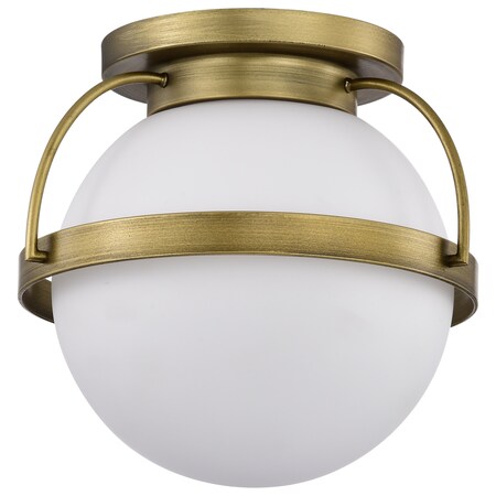 Unleash the transformative power of romance with the Lakeshore 60-7771 medium flush mount. Let its matte black and natural brass finishes, combined with the allure of white opal glass, create an atmosphere where warmth and style converge. Whether illuminating your living room, bedroom, or dining area, these fixtures will set the perfect mood for any occasion, from cozy nights into elegant gatherings. Embrace the possibilities and elevate your living space with the Lakeshore Collection, a testament to the enduring allure of true, and exquisite design. Accepts one 60 watt ST19 medium base bulb or LED equivalent / Steel Construction / White Opal Glass / Matte Black Finish / Damp Location Rated / 1 Year Warranty / Instructions and mounting hardware included for easy installation / Experience the perfect blend of style and functionality with the Lakeshore collection, tailored to suit your unique taste and elevate your living spaces..