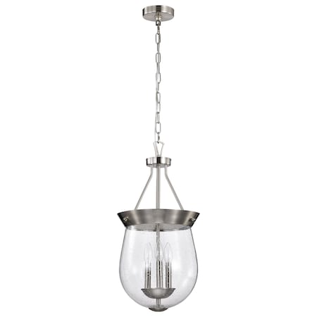 Boliver 3-Light Pendant 11 in. Brushed Nickel Clear Seeded Glass