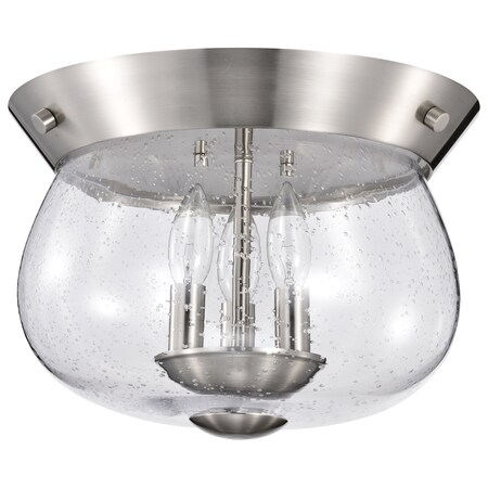 Boliver 3-Light Flush Mount Brushed Nickel Clear Seeded Glass