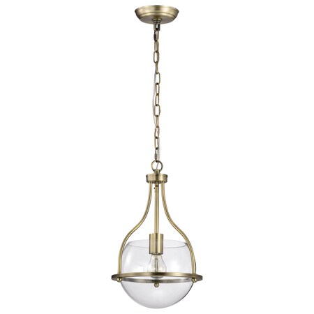 Amado 1-Light Pendant 10 in. Vintage Brass Clear Glass