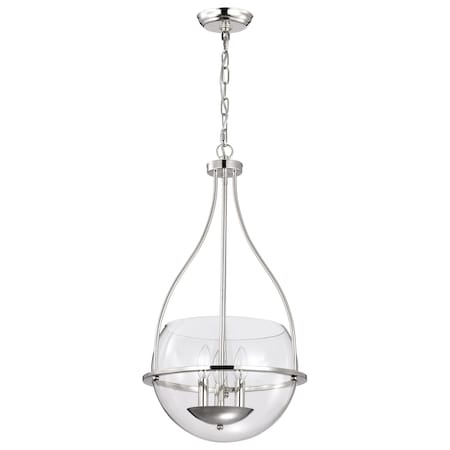 Amado 3-Light Pendant 14 in. Polished Nickel Clear Glass