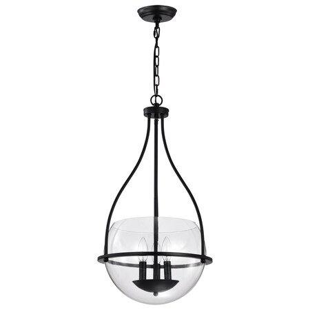 Amado 3-Light Pendant 14 in. Matte Black Clear Glass