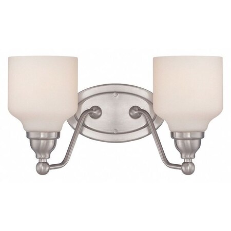 Kirk 2 Light Vanity Fixture Satin White Glass LED Omni Inclu, Housing Finish: Polished Nickel