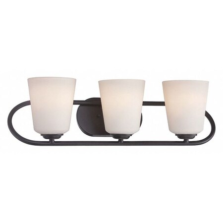 Dylan 3 Light Vanity Fixture Satin White Glass LED Omni Incl, Housing Finish: Mahogany Bronze
